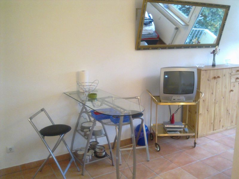 | Räumlichkeiten | Wohnfläche : ca. 30qm. Anzahl der Zimmer : 1 Bad : 1 Bad mit Dusche, 1 Gäste WC Ausstattung Küche : Pantryküche mit Herd, Kühlschrank, Gefrierfach, Hängeschrank mit diversen Geschir. Innenbereich : Heizung, TV, DVD Player, Bettwäsche auf Wunsch, Kabelfernseh,Stereoanlage. Radio, Warmwasser |